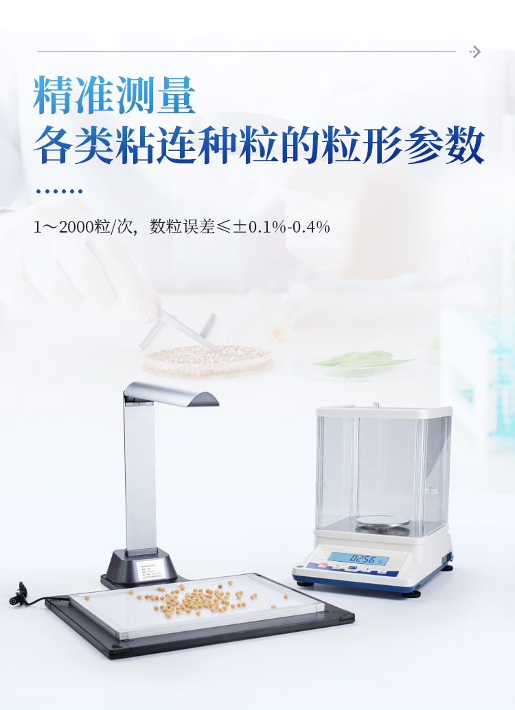 3、数粒精度与目标大小:1~2000粒/次,数粒误差≤±0.1%-0.4%,极少监视修正即可保证结果准确性。千粒重分析的精度误差:≤±0.5%;
