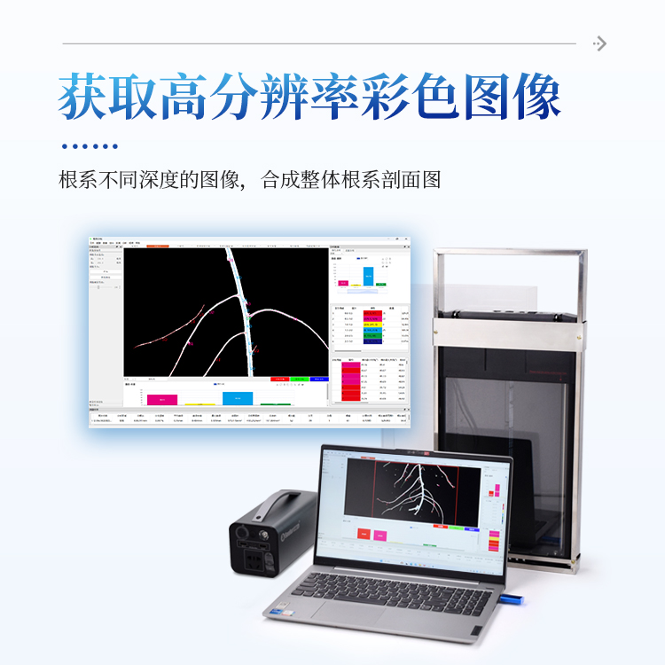 可获取根系不同深度的图像,合成整体根系剖面图;